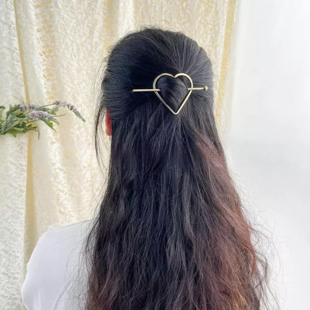 Our Korean Simple Metal Love Shaped Hair Stick isn’t just another hair accessory; it’s a piece of fashion-forward jewelry for your hair. Its unique design stands out, making it a great conversation starter and a statement piece. Whether you’re attending a wedding, going to a party, or simply running errands, this hairpin adds a touch of glamour to your look without overwhelming it.