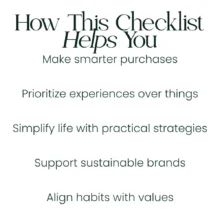 This digital checklist is perfect for anyone seeking a mindful lifestyle, from sustainability enthusiasts and minimalists to conscious shoppers and eco-friendly advocates. If you want actionable steps to simplify your life, make better purchasing decisions, and align your choices with your values, this guide is made for you.