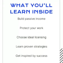 “Creative Licensing Goldmine” is designed for creative entrepreneurs who want to make money from their work without constantly creating new projects. If you’re ready to learn how licensing creative work for recurring revenue can change your financial future, this guide is for you. It’s not just theory – it’s packed with actionable steps that will guide you to success.
