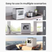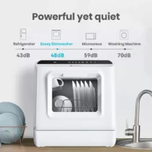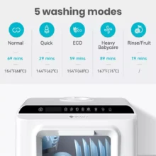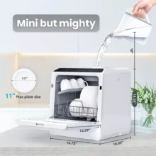 - Compact Design: Perfectly sized to fit on any countertop, making it ideal for small kitchens or spaces where a traditional dishwasher doesn’t fit.