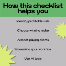 This checklist is perfect for aspiring freelancers, creatives, stay-at-home parents, students, 9–5 professionals, and anyone who wants to develop high-income skills for side hustle growth. If you’re looking for clarity, structure, and a proven path to monetizing your skills, this is for you.