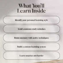 This isn’t just another study guide—it’s a blueprint for becoming a smarter learner for life. Backed by science and filled with real-life tools, this guide helps you avoid common mistakes, identify your unique learning style, and create a custom strategy for learning anything more effectively.