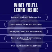 Download the Memory Boost Worksheets for Students & Adults today and start your 30-day journey toward stronger recall, sharper focus, and lifelong brain fitness. Whether you’re a student, a busy professional, or someone simply wanting to think more clearly—this ebook has what you need. Grab your digital copy now and unlock the full collection of practical memory-enhancing activities suitable for all ages!