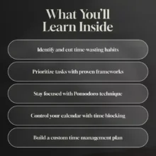 Unlike generic productivity books, the More Time, Less Stress: Time Management Mini-Course gives you step-by-step guidance, real-life case studies, and quick prompts you can use immediately. It’s built for busy people who need practical solutions—not theory—so you can start applying changes the same day you download it.