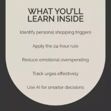 Unlike generic budgeting worksheets, this guide focuses on the psychology behind spending and combines traditional awareness techniques with modern AI tools. You’ll not only understand your triggers—you’ll have structured exercises, real-world case studies, and technology-based support systems that help you turn insight into lasting behavior change.