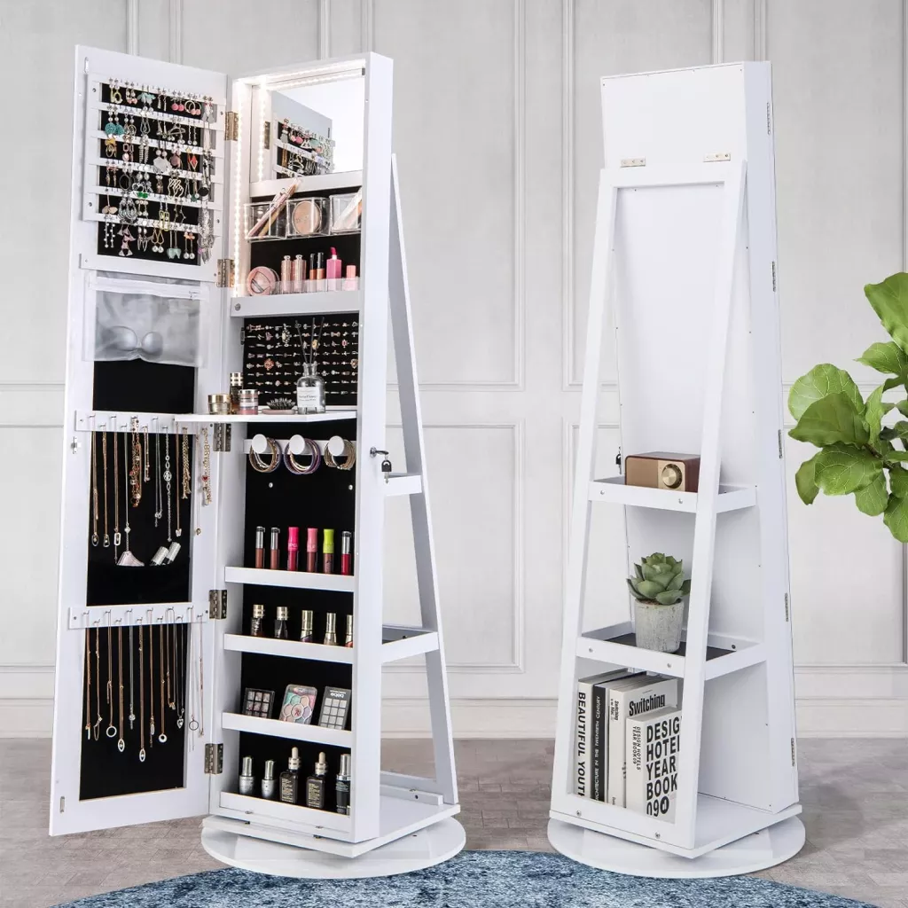 Full Length Mirror Jewelry Armoire with LED Lights