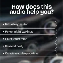 i didn’t realize how much anxiety was tied to my sleep until i started using this before, i’d lie there for an hour replaying conversations or worrying about tomorrow now, as soon as i put it on, my breathing slows and my mind starts to quiet the voice is gentle but keeps me focused just enough to keep me from drifting into anxious thoughts the background sounds are soft and soothing—almost like they’re wrapping me in warmth i’ve been falling asleep in 15 minutes or less and i’m sleeping through the night more often in the mornings, i feel more rested and even my mood at work has improved it’s given me a sense of control over my nights