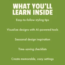 - Enhance your home’s atmosphere by designing seasonal, cozy tablescapes that will impress guests and create memorable experiences.