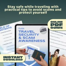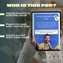 When you’re exploring a new destination, the last thing you want is to fall victim to a scam or unsafe situation. The Travel Security & Scam Awareness Guide is your essential companion for traveling with confidence. This easy-to-read digital guide is packed with real-world examples, proven safety strategies, and quick prompts you can use on the go—helping you enjoy your trip without unnecessary risks. Whether you’re a first-time traveler or a seasoned globetrotter, this guide gives you the tools to protect yourself, your belongings, and your peace of mind.