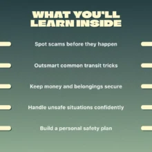 - Transit safety tips—taxi scams, airport fraud, and how to respond if you feel unsafe