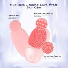 • Dual Bristle Design: Targets different facial areas for comprehensive cleaning.
